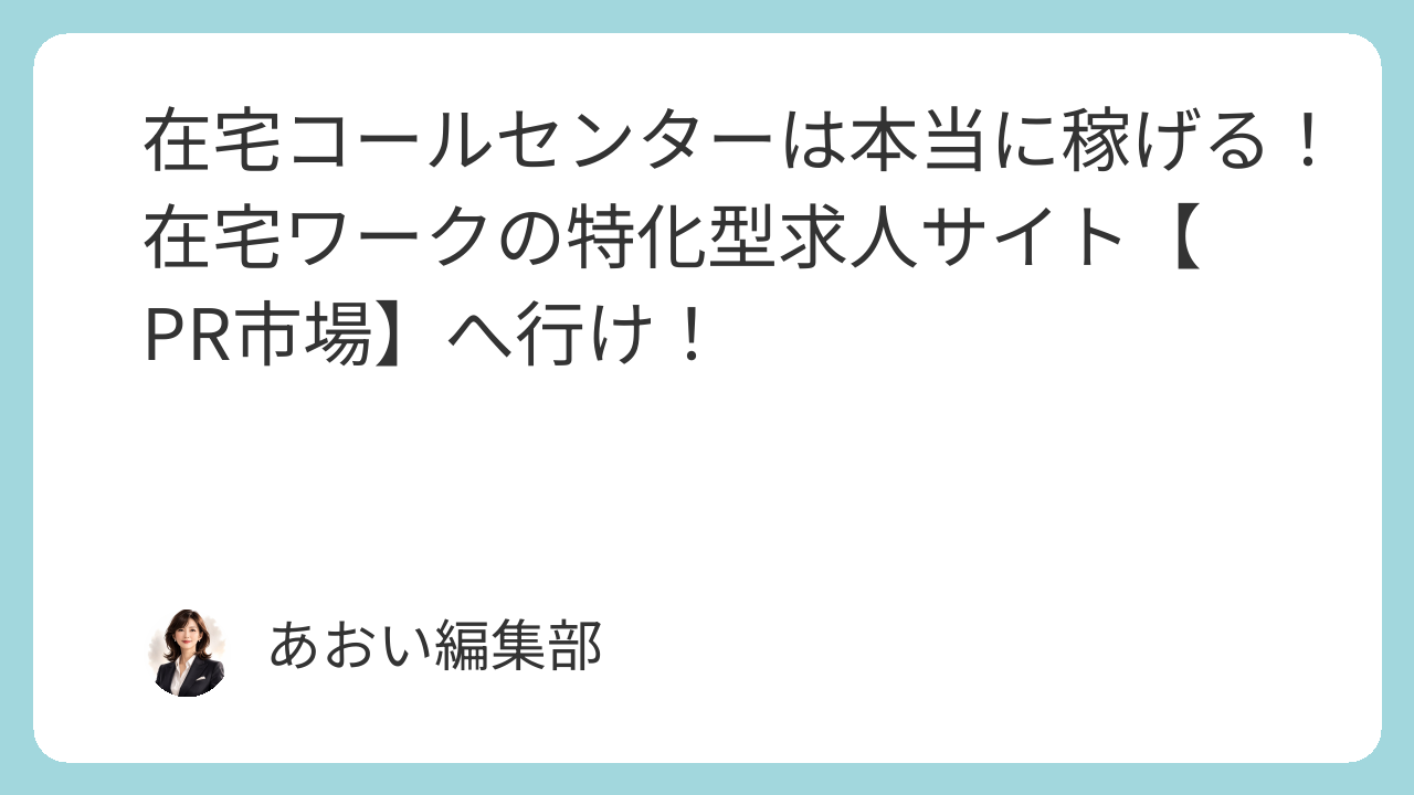 在宅コールセンターは本当に稼げる!在宅ワークの特化型求人サイト【PR市場】へ行け!