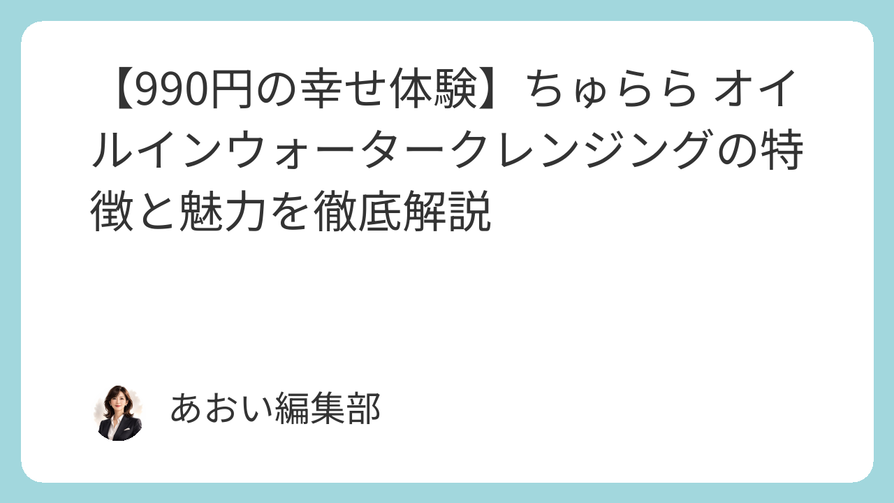 【990円の幸せ体験】ちゅらら オイルインウォータークレンジングの特徴と魅力を徹底解説
