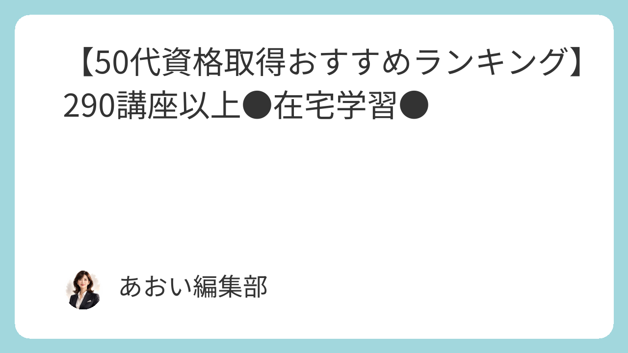 【50代資格取得おすすめランキング】290講座以上●在宅学習●